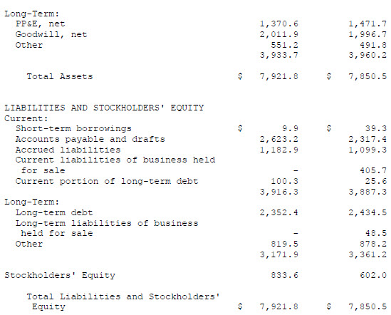 Management believes the non-GAAP financial measures used in this press release are useful to both management and investors in their analysis of the Company's financial position and results of operations. In particular, management believes that core operating earnings and pretax income before restructuring costs and other special items are useful measures in assessing the Company's financial performance by excluding certain items (including those items that are included in other expense) that are not indicative of the Company's core operating earnings or that may obscure trends useful in evaluating the Company's continuing operating activities. Management also believes that these measures are useful to both management and investors in their analysis of the Company's results of operations and provide improved comparability between fiscal periods. Management believes that free cash flow is useful to both management and investors in their analysis of the Company's ability to service and repay its debt. Further, management uses these non-GAAP financial measures for planning and forecasting in future periods.